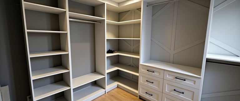 From walk-in closets to reach-in units and fully customized wardrobes, we create solutions that make the most of your space while keeping everything organized and accessible.